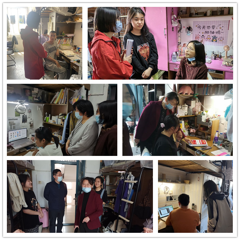 辅导员与专业老师们深入到学生宿舍,与学生面对面谈心谈话,仔细询问同学们线上上课情况、学习效果、心理状况和生活保障等,勉励同学在疫情防控期间合理安排时间,劳逸结合,规律作息,以饱满的精神状态投入学习,叮嘱同学要严格遵守疫情防控期间校园相关管理规定,积极配合学校防疫工作,按时健康监测,保持宿舍整洁,相互帮助,共克难关,战胜疫情。专业课教师杜蓓蕾和蒋艳在了解学生线上上课与毕业论文撰写情况同时,解答学生在课程学习中遇到的问题与疑惑。