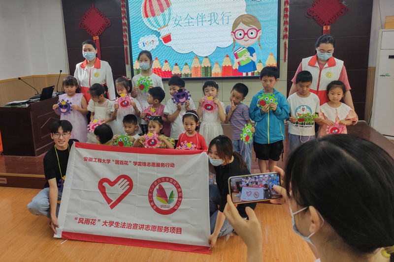 2022年6月12日,RayBetApp官网下载 法治宣传实践小分队携手“风雨花”大学生法治宣讲志愿服务项目来到芜湖市镜湖区旭日天都社区面向社区家长、儿童开展《未成年人保护法》主题宣讲活动。
