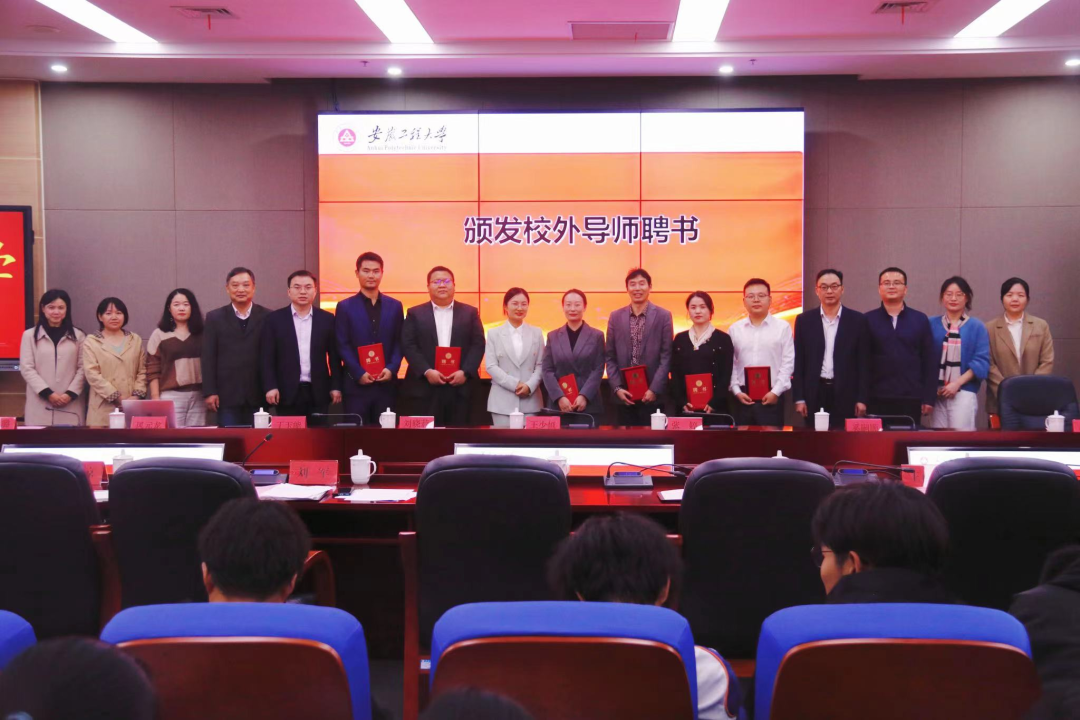 人文学院研究生校外导师、本科生校外导师聘任仪式。刘军宣读了安工程人文学院硕士研究生校外导师及本科生校外导师名单。邓英扣、刘军为北京盈科(芜湖)律师事务所的部分律师颁发了校外导师聘书。
