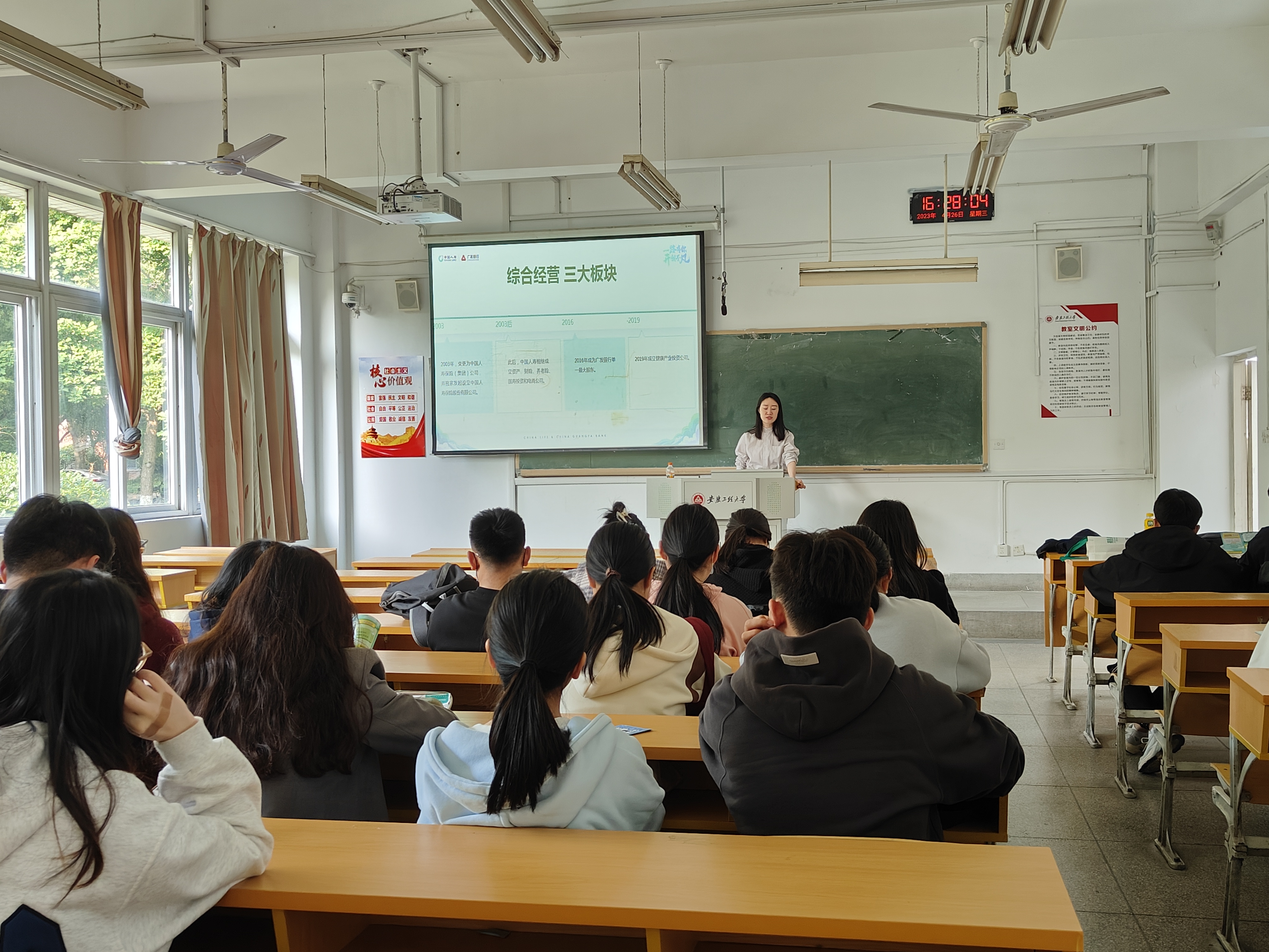 为进一步拓宽2023届毕业生就业渠道,搭建毕业生与招聘企业之间的双选供需平台,促进毕业生顺利就业。4月26日下午,人文学院邀请中国人寿财险芜湖市中心支公司在4J103举办专场宣讲招聘会。