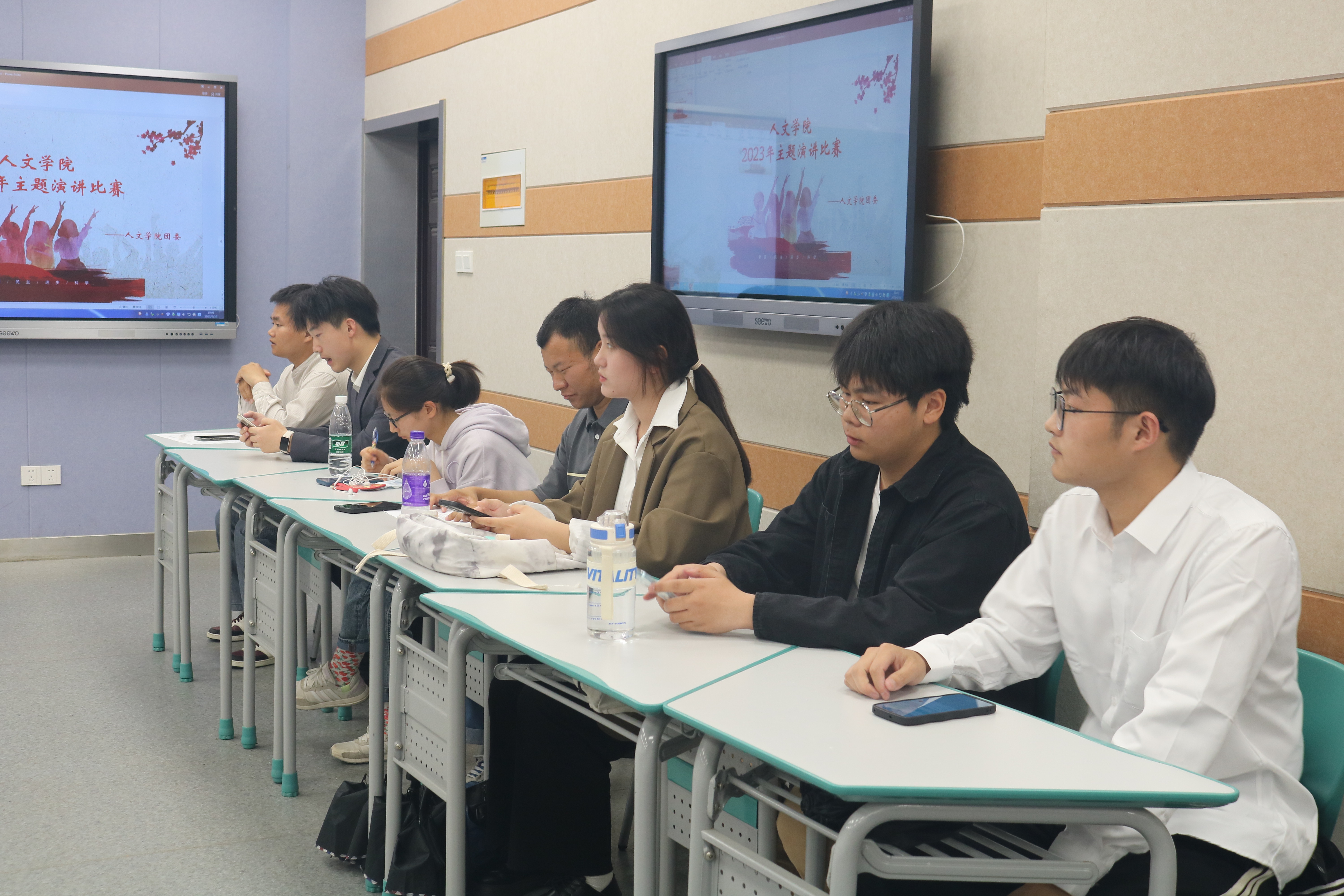 为推深做实“三全六专”育人实践,进一步宣传学校学院办学特色,发挥学院学生在“高校-高中”互动交流中的积极作用,提升学院学生的综合素质,5月10日,人文学院在4J101举办“一样的分数,不一样的教育”主题演讲比赛。学院党委副书记王中江、辅导员范夏勋、余丹丹参加了本次活动并担任评委。各班级推选的15名选手围绕主题进行了精彩的演讲,部分学生代表到场观看。