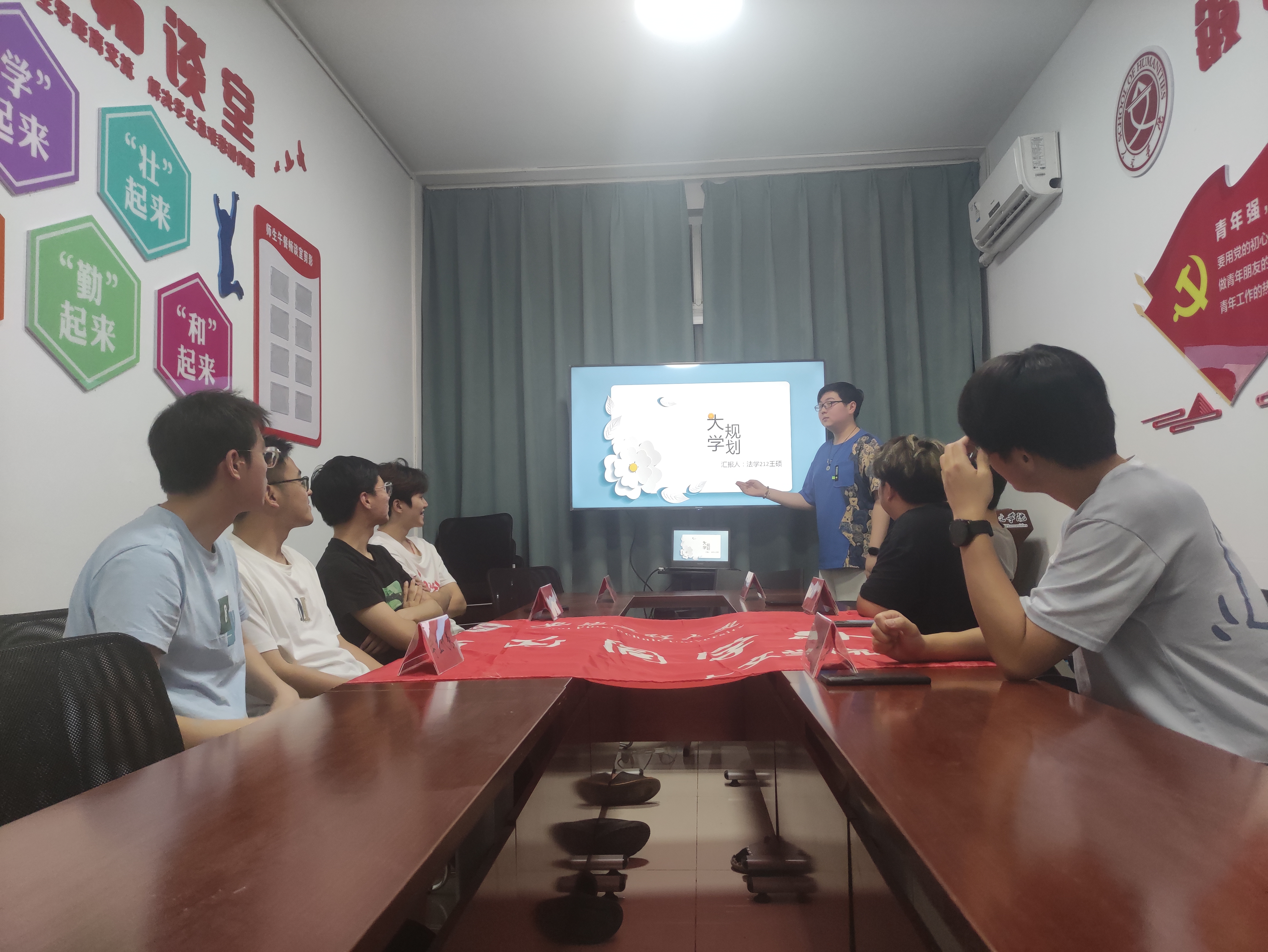 本次活动邀请了历届大学生职业规划设计大赛的获奖者代表法学212王芝明、王硕两位同学,面向大二年级学生代表分享各自的职业生涯规划及学习、实践经验。王芝明同学表示,作为发展对象,必须积极发挥先锋模范作用,增强服务意识,结合专业所学及实践经历,帮助同学提升对个人价值实现、职业发展规划等方面的理性认识。王硕同学表示,作为学院“暖途”青年志愿者服务社的负责人之一,将始终以饱满的热情和积极向上的人生态度奋战在志愿服务第一线,用实际行动践行志愿者精神,在志愿服务实践中实现人生价值,为社会贡献自己的青春力量。