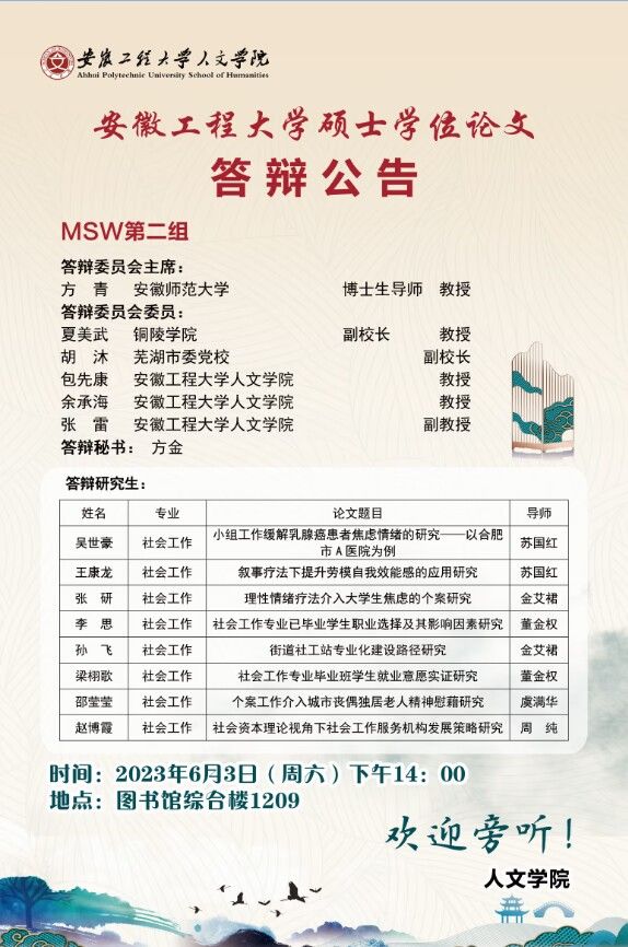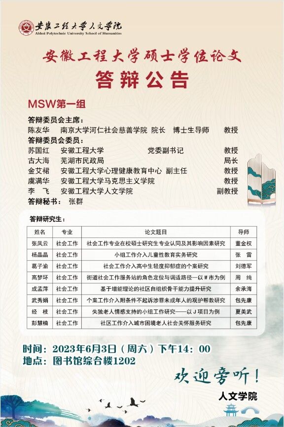 RayBetApp官网下载 硕士学位论文答辩公告(社会工作专业)