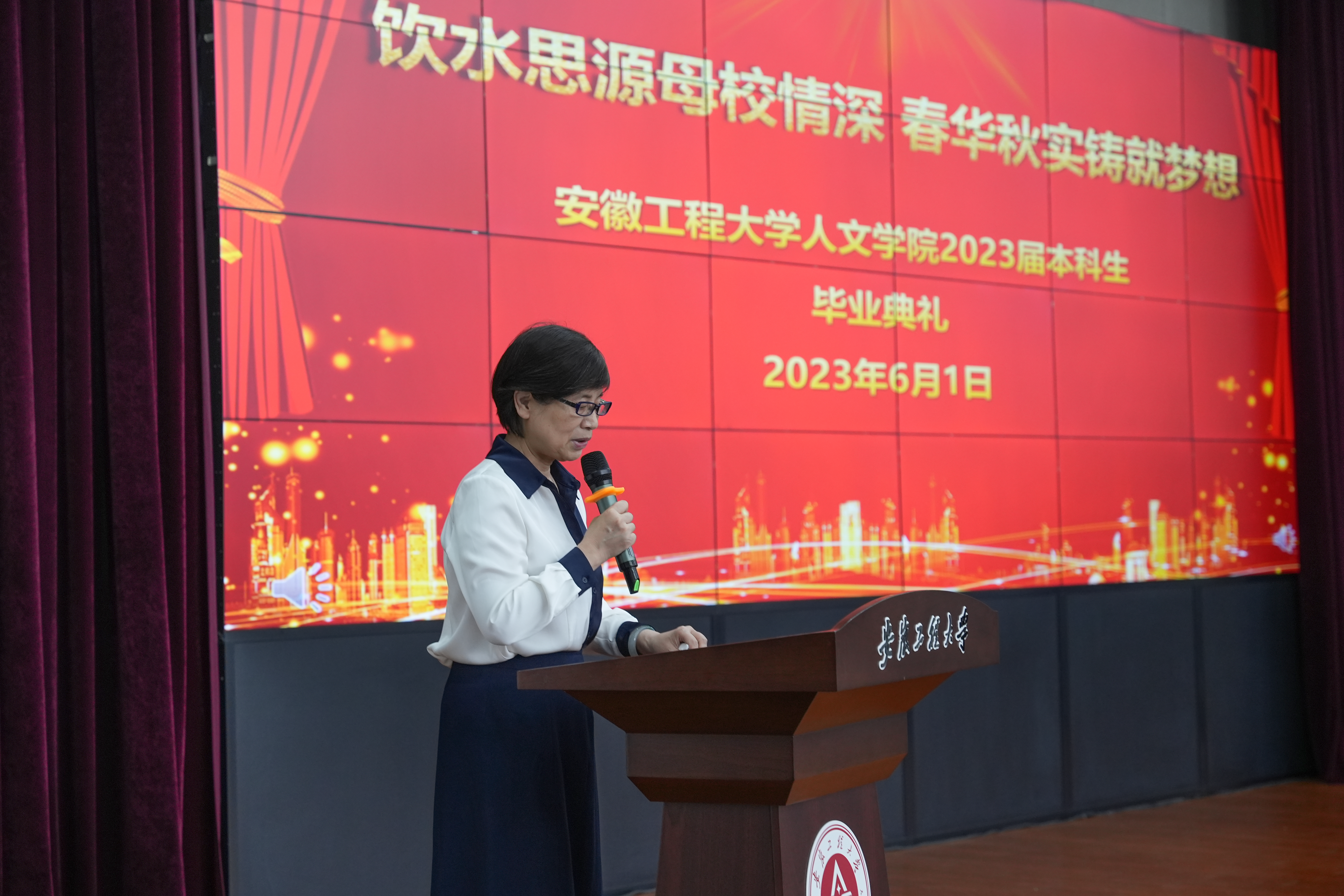 在庄严肃穆的国歌声中,毕业典礼正式拉开帷幕。苏国红表示, 作为一名老师,我和大家一样激动,在此,我向在座的毕业生代表,并通过你们,向全体毕业生同学们,致以热烈的祝贺!向辛勤哺育你们的亲人、悉心指导你们的老师,表达诚挚的谢意。苏国红在致辞中带领毕业生回顾了学校、学院不平凡的发展历程,并从“追梦”、“实干”、“怀德”三条主线,希望毕业生不忘“人文”身份,树立“徽程”形象。