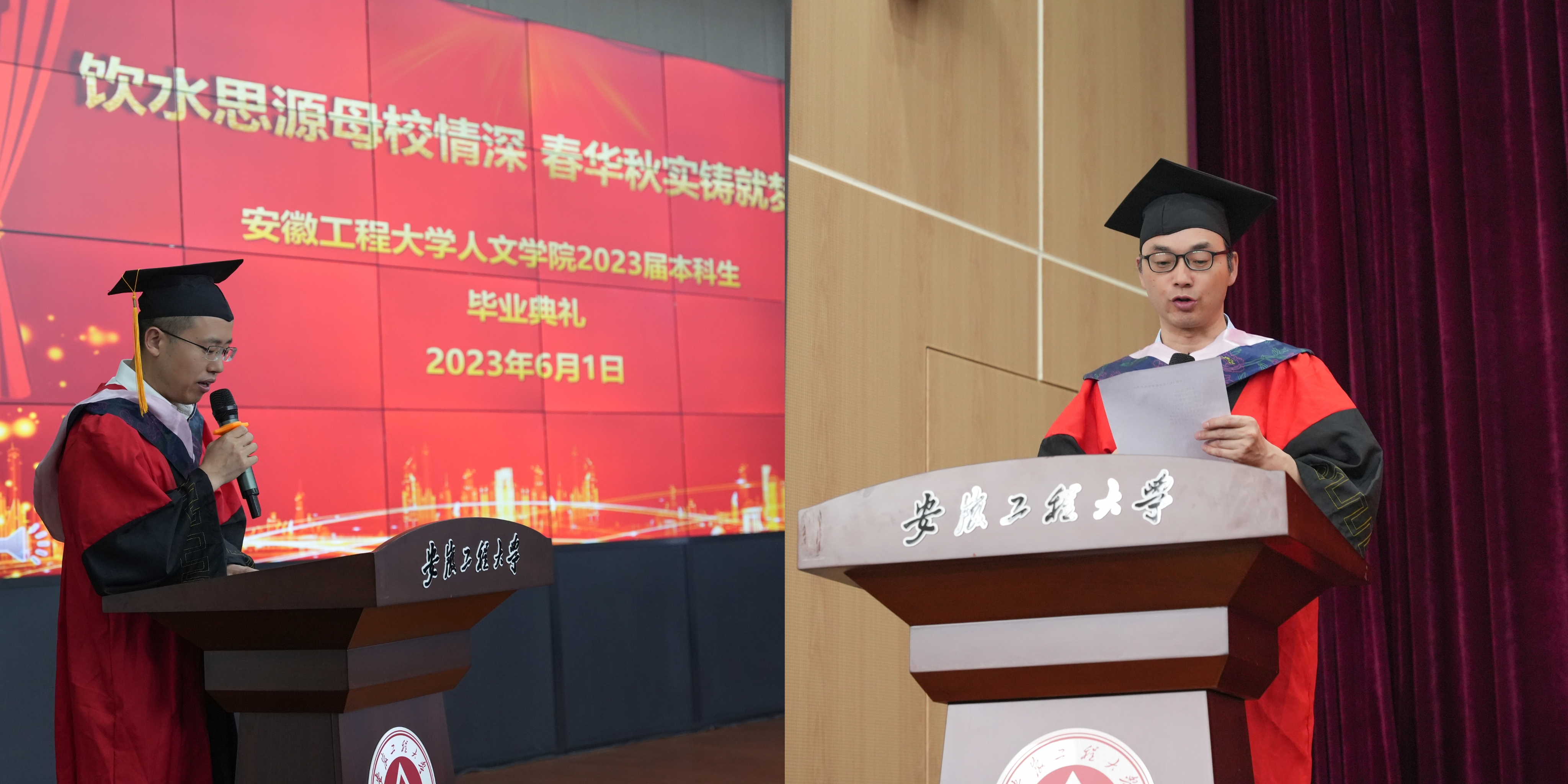 教师代表李飞回忆四年的点点滴滴,勉励同学们在知识大爆炸的时代坚持学习、明确目标,做一个有目标、有追求的人。勉励大家,永远不要放弃梦想,梦想的翅膀会带领你们走向未来。毕业生代表程路程同学发言,向母校的悉心培养、老师的谆谆教诲表达了感谢,并祝愿学校滋兰树蕙、永续华章,祝愿老师工作顺利、桃李芬芳!