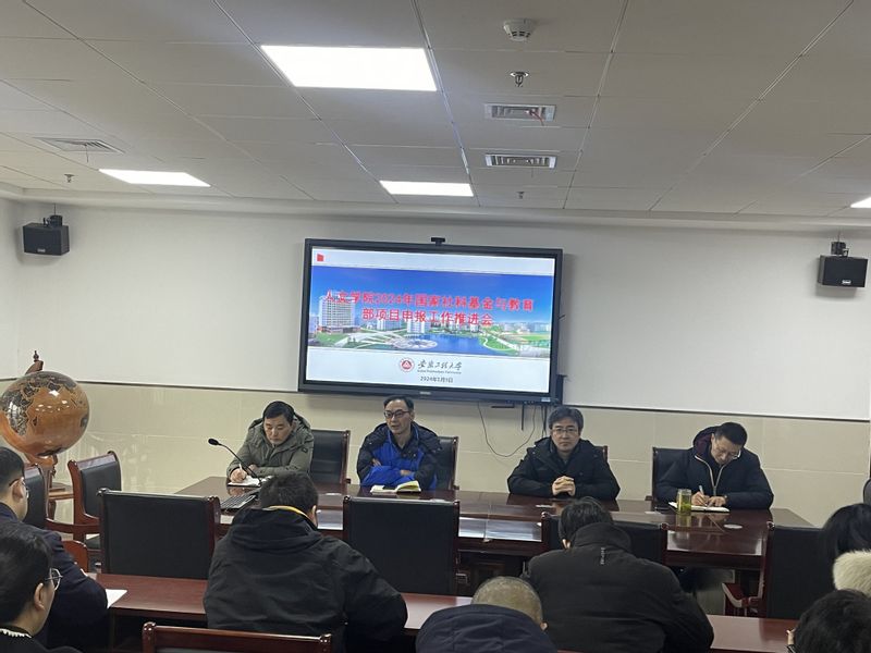 2024年1月9日上午,人文学院在T1307会议室召开了2024年国家社科基金与教育部项目申报工作推进会,人文学院党委书记刘一、院长刘军、副院长张勇及人文学院20余名博士教师参加了本次会议,会议由人文学院副院长邹俊主持。