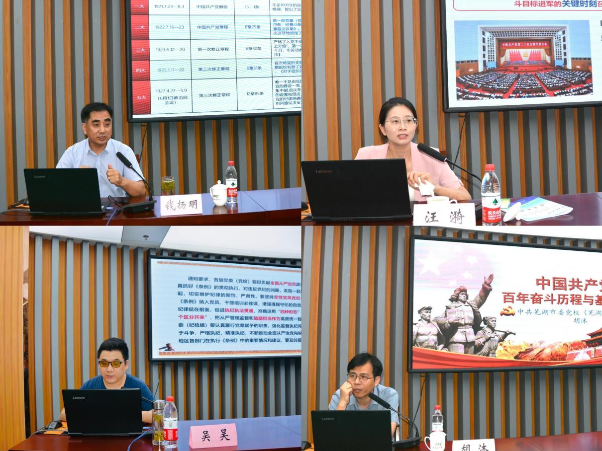 无为市委党校高级讲师钱扬明以“学习党章、遵守党章、贯彻党章、维护党章”为题,对党章进行了系统而深入的讲解。芜湖市委党校副校长胡沐围绕“中国共产党百年奋斗历程与基本启示”,聚焦中国共产党的五大成绩与四大挫折展开论述,并解读了中国共产党一百年来的宝贵经验,引领学员从党的百年奋斗历程中汲取前行的力量,坚守初心,坚定不移跟党走。无为市委党校吴昊老师为学员剖析了修订《中国共产党纪律处分条例》的重要意义,并对修订内容进行重点学习。通过鲜活的案例警示,为全体培训学员精准把握和深刻理解《条例》的主旨要义及规定要求提供了重要指导。芜湖市委党校汪漪老师以“深入贯彻落实党的二十大精神,加快推进教育高质量发展”为题,从指导思想、基本道路、现实基础、战略部署四个方面对党的二十大报告的精神予以深入解读。