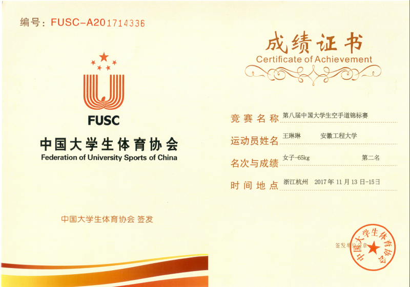 2017年王琳琳获第八届中国大学生空手道锦标赛第二名