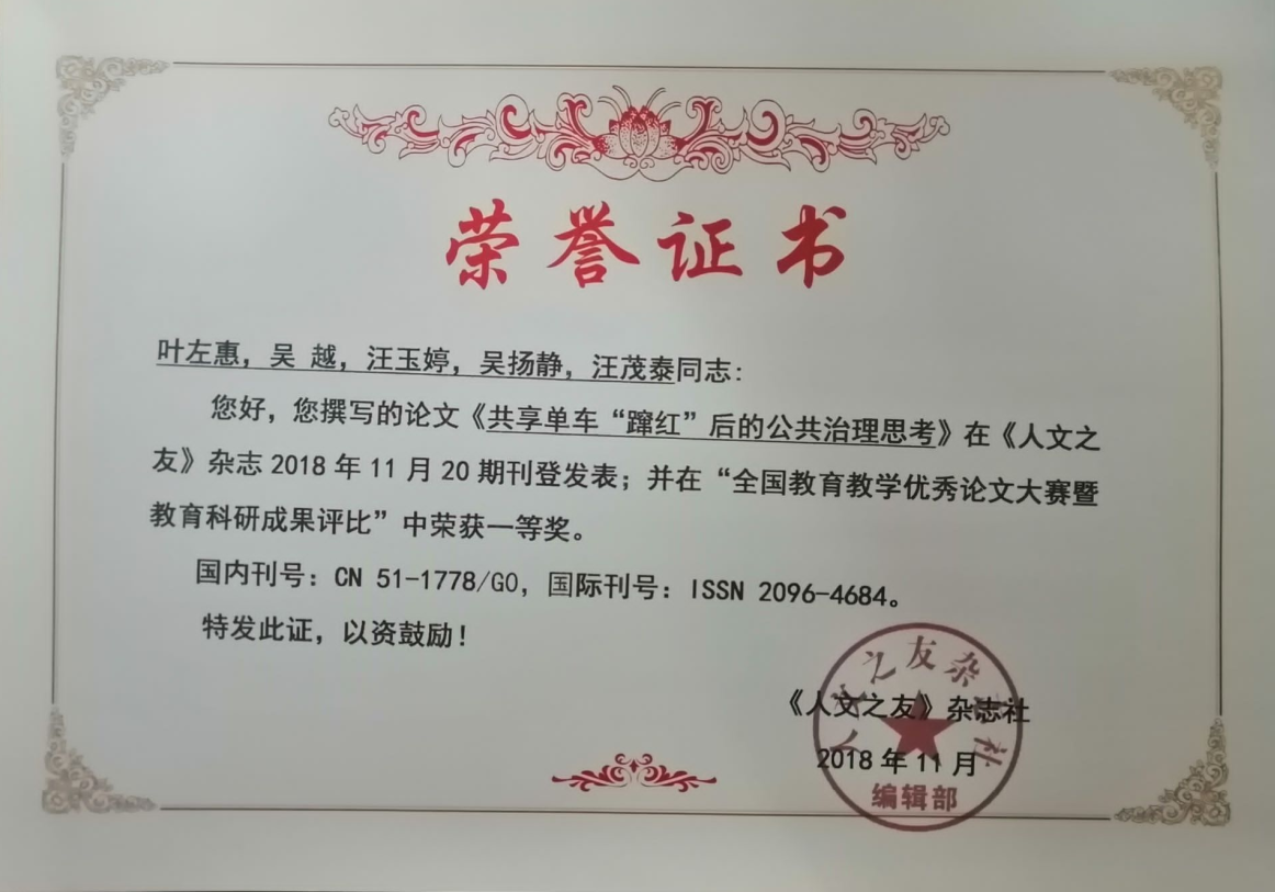 2018年全国教育教学优秀论文大赛暨教育科研成果一等奖