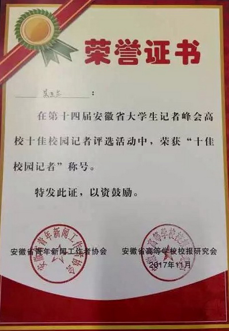 2019年安徽省大学生原创文学新星大赛中取得二等奖