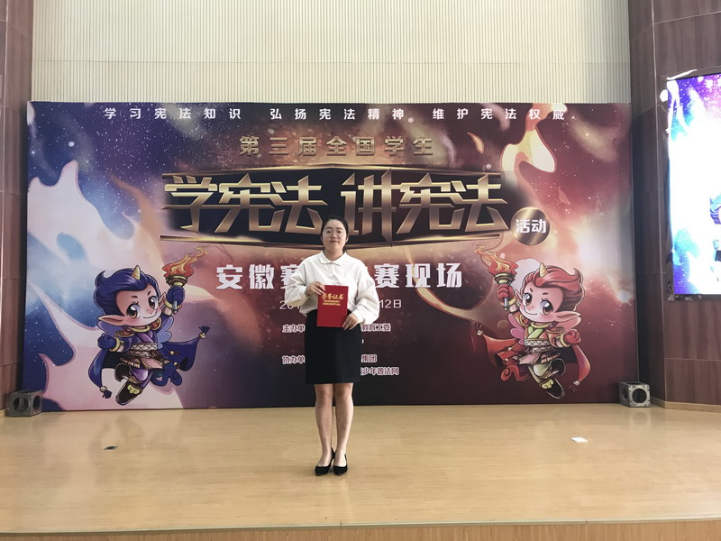 2018年邵雨婕获第三届全国学生“学宪法讲宪法”安徽赛区演讲比赛二等奖