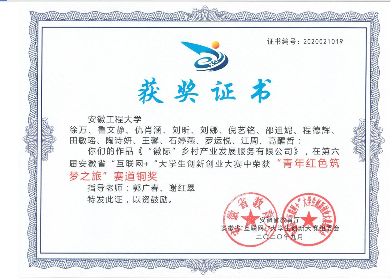第六届安徽省“互联网+”大学生创新创业大赛铜奖