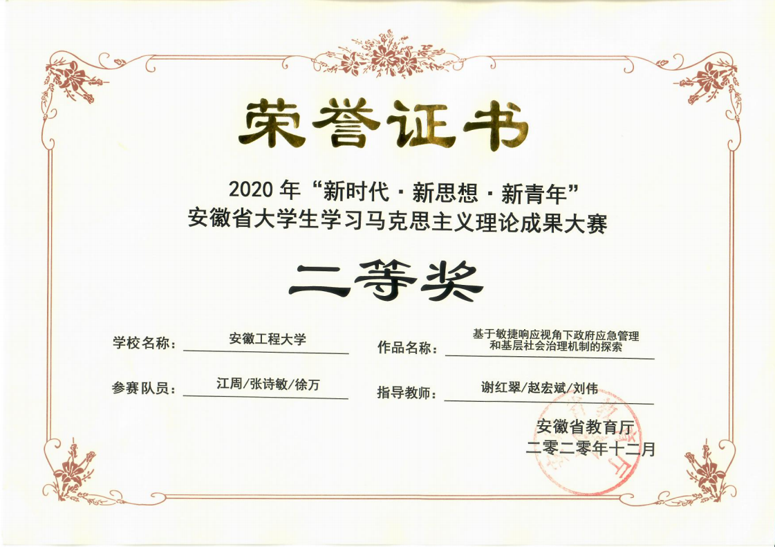 安徽省大学生学习马克思主义理论成果大赛二等奖