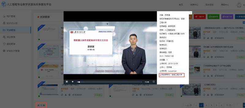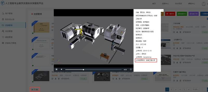 教师积极参加教育部高等教育司组织的人工智能专业教学资源征集活动,建设完成的课程资源通过评审,并基于“人工智能专业教学资源共享服务平台”http://47.95.252.159/)面向全国高校师生开放共享应用。