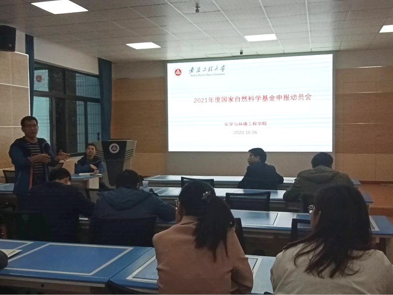 10月26日下午,化学与环境工程学院在图南楼虚拟仿真中心召开2021年国家自然科学基金项目申报动员会。学院党委书记水心宝,副院长高建纲、徐大勇及符合2021年国基申报条件的教师们参加了动员会。