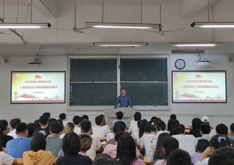 5月24日下午,化学与环境工程学院第三期入党积极分子培训班结业典礼在2教107顺利举行。化环学院党委副书记胡承功出席典礼,学院培训班共92位学员参加结业典礼,典礼由培训班班主任王康主持。