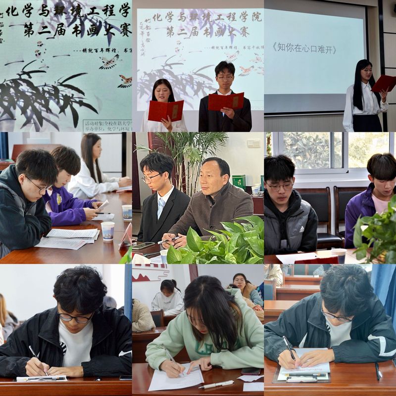 百年奋斗史,峥嵘岁月荣,11月13日上午,化学与环境工程学院在学院二楼会议室举办了以“铸就百年辉煌,书写千秋伟业”为主题第二届书画大赛,学院党委副书记胡承功,辅导员代表参加了本次活动。
