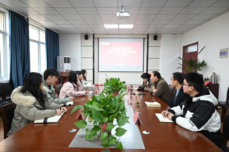 会上,蔡金平代表学校团委对镜湖区团委来化环学院开展对接合作表示欢迎,希望镜湖区团委和化环学院团委能够根据合作框架协议,把握好合作的方向,找准社会实践及志愿服务的契合点,推进品牌项目建设,努力构建校地合作的样板工程。胡承功对学校团委积极搭建合作平台表示感谢,对镜湖区团委来院开展合作交流表示欢迎。他介绍了化环学院的人才培养、专业特色、师资队伍、教学科研等情况,并重点介绍了学院社会实践及学生志愿服务项目情况及在暑期三下乡社会实践方面取得的特色成效,希望通过此次洽谈,双方能够在学生政务实习、创新创业等方面开展深度合作,有效实现资源整合,优势互补,实现共赢。李梦茹从镜湖区对团委的工作辖区,管理内容,可以开展合作的方向和机会进行了详细的介绍。双方在乡村振兴、人民城市合伙人计划、“紫云英”计划、乡村环境调研、科技与生活,变废为宝计划等方面开展了热烈的讨论交流。