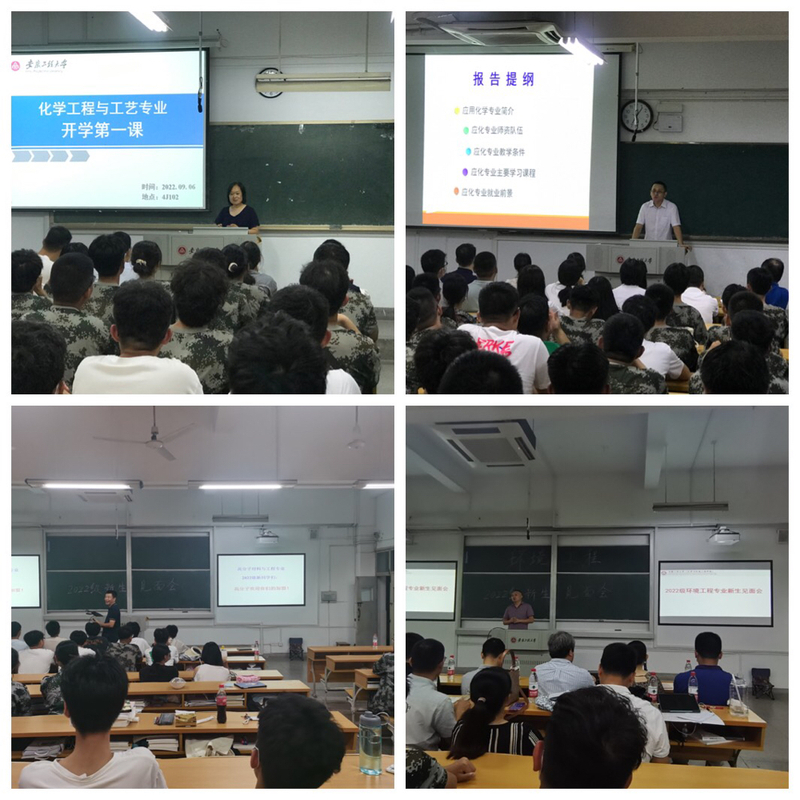 专业介绍,因为了解所以热爱。军训期间,化环学院还举行了专业介绍会,各个专业系部主任及教师参加了介绍会。他们围绕专业办学历史、专业背景、师资力量、教学资源、专业定位、就业前景等方面向新生做了全面解读。通过介绍,同学们对所学专业充满信心与期待,希望早日进入学业导师实验室参与科学项目。环工222班冯安琪同学在听完环工专业介绍后说:“我原来对环工专业也不是很了解,但是听了老师们的介绍,我对专业充满了信心。我将努力学习专业知识,将来为环保事业贡献自己的力量”。