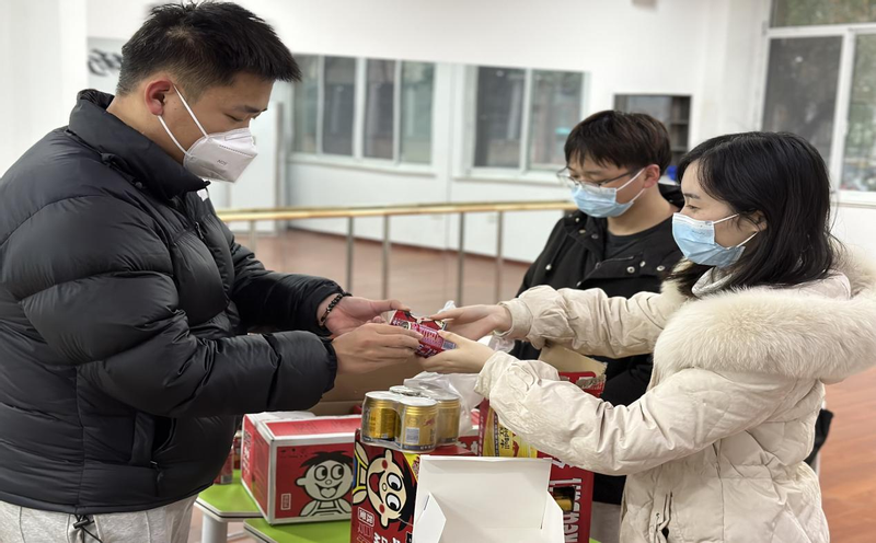 2022年12月16日下午,化环学院开展关怀慰问留校考研学子活动,毕业班辅导员马晨和程秀仙为在“研”途冲刺阶段的考研学子发放慰问品。