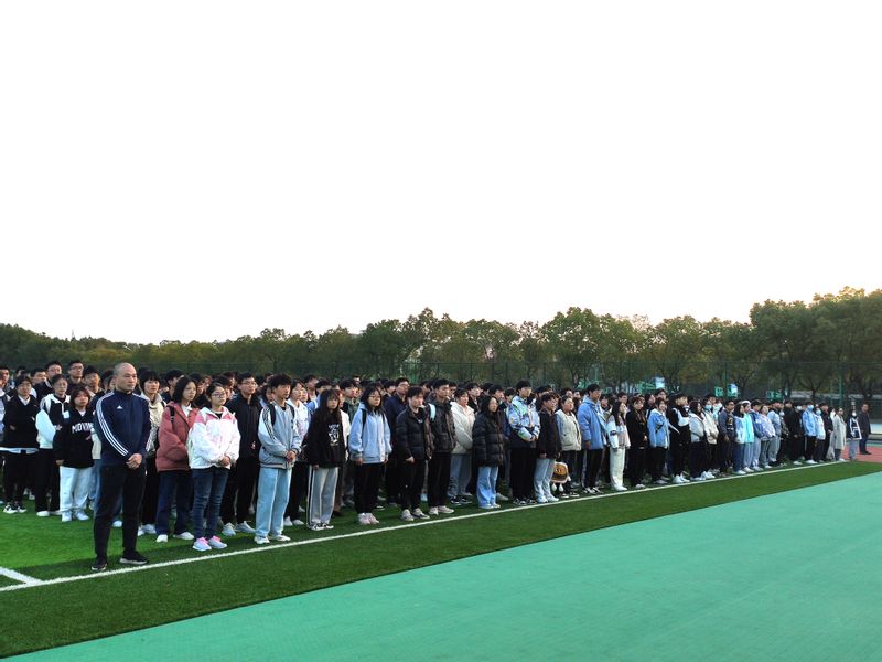 学校国旗护卫队迈着铿锵有力的步伐护送国旗入场,伴随着激昂雄壮的《义勇军进行曲》,鲜艳的五星红旗迎着朝阳缓缓升起。全体师生面向国旗高唱国歌,行注目礼,表达对祖国的热爱和美好祝福。