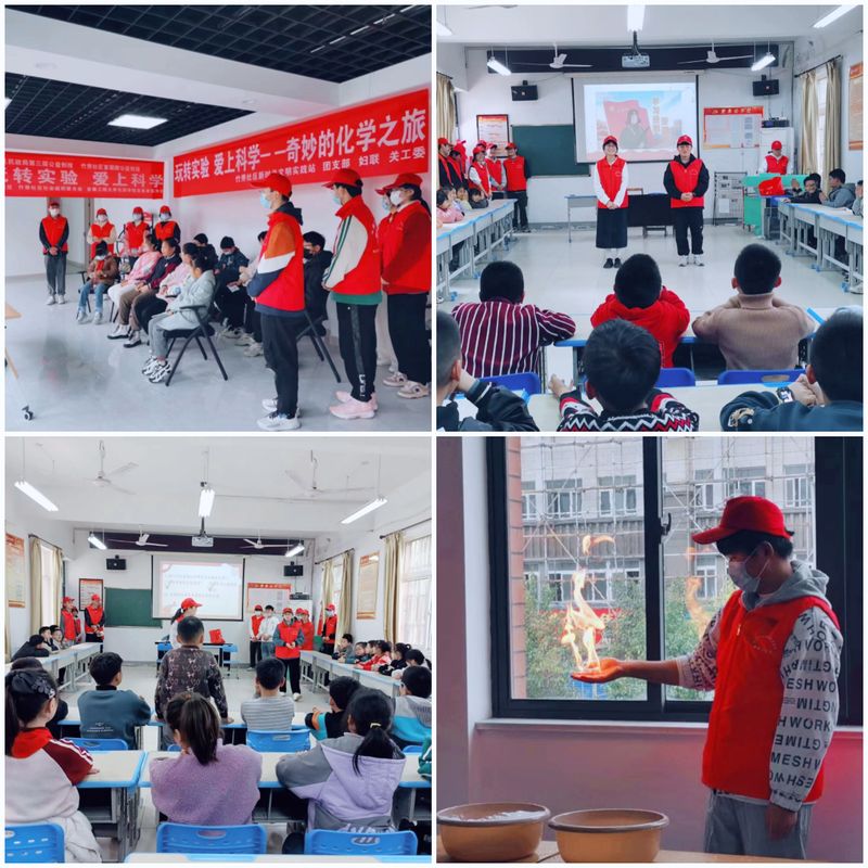 3月8日,化环学院志愿团在芜湖市清水小学开展“吟童心,连梦想”爱心公益活动。3月15日下午,化环学院志愿团的志愿者们在清水小学开展了以“培养助人情节,弘扬雷锋精神”为主题的学雷锋活动,通过化学科普小课堂、志愿服务情景剧、微视频等多种形式引导清水小学的学生们了解雷锋事迹,学习雷锋精神,争当生活中的小雷锋,积极主动地去帮助他人,在成长道路上树立正确的人生观、价值观和道德观。3月18日上午,化环学院志愿团的志愿者们、“扶郎花”儿童科学实践志愿在竹秀社区第一次开展了以“化学科普·青少年儿童自然科学兴趣培养”为主题的团百花学雷锋志愿活动。在活动过程中,志愿者们介绍本次实验内容并开启本次科普实验,向同学们展示了“火焰掌”、“红绿灯”两个有趣的实验,并在实验过程中给同学们讲解实验原理及步骤,不断增加在场同学们的兴趣,激发孩子们的好奇心和求知欲,在丰富科学知识的同时提高了他们的动手实践的能力。