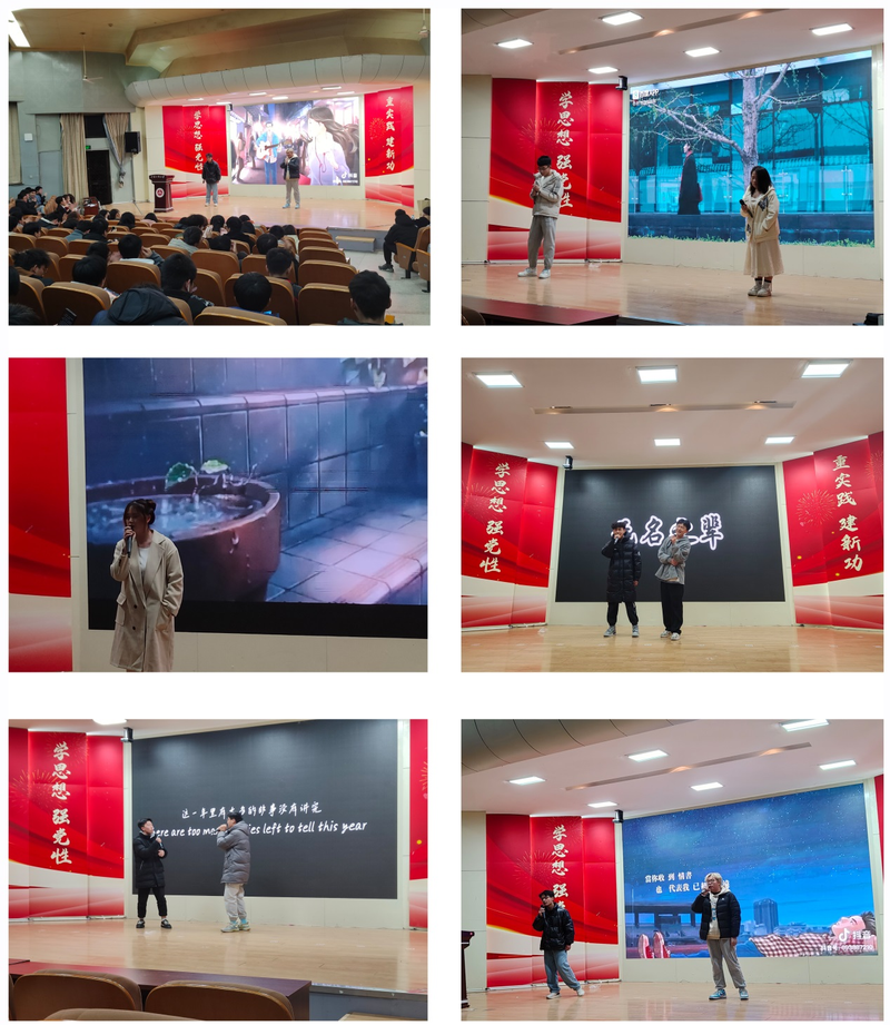 活动设置了送祝福环节,各专业班长逐一上台为同学们送上新年祝福,祝愿同学们在2024年都能以梦想为舟,以奋斗为桨,一路乘风破浪,期许学院在人才培养、教学科研等方面不断探索创新,学校教育事业发展生机勃勃;祝愿祖国繁荣昌盛,国泰民安。