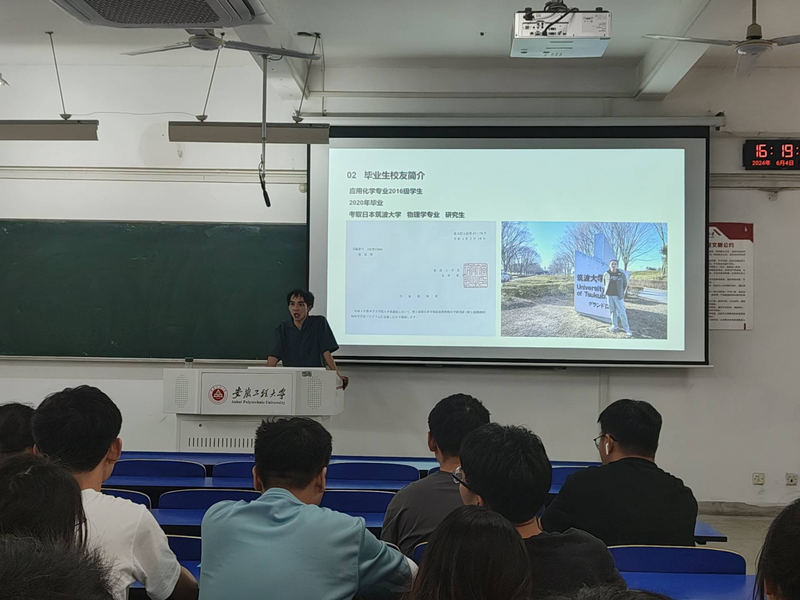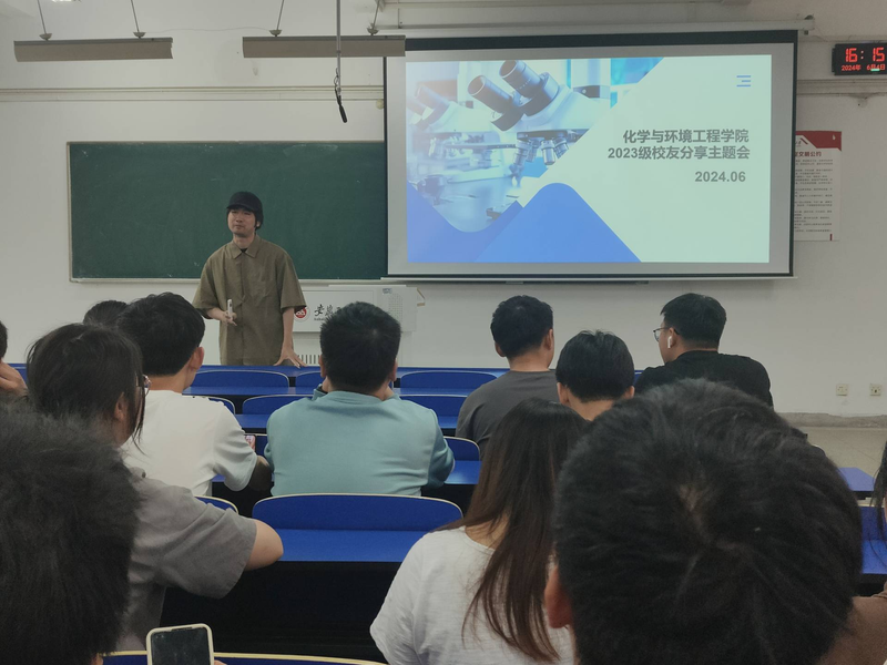 为充分发挥校友的引领作用,调动化环学院学生的学习积极性,鼓励同学们向先进典型学习,科学规划大学生活,营造学院优良学风,推动校“三全六专”育人实践走深走实。2024年6月4日下午,化学与环境工程学院于6J212开展优秀校友交流会。学院2016级应用化学专业校友、日本筑波大学物理学专业硕士毕业生范福与同学们分享了自己海外求学、就业的经验感悟。学院2023级全体同学参与,交流会由辅导员马晨主持。