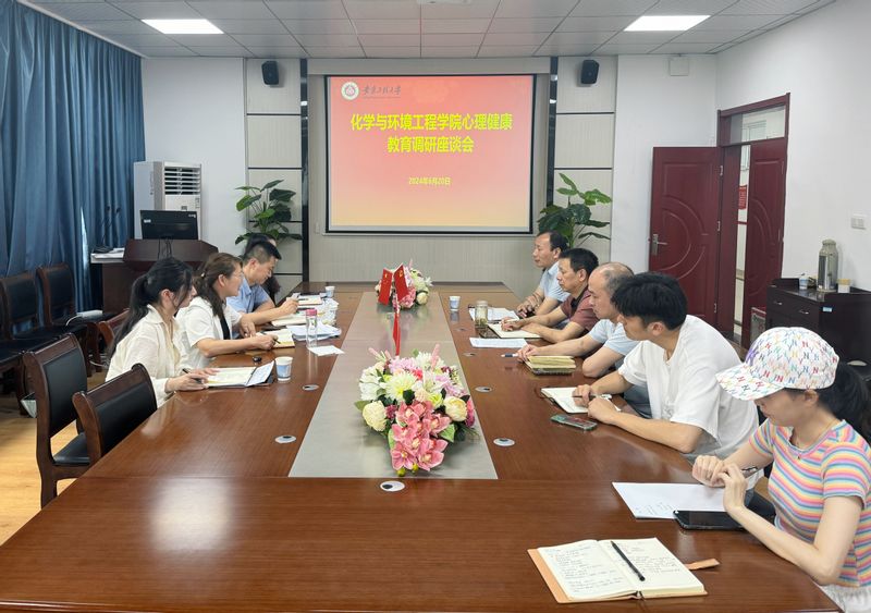 为推深做实学校“三全六专”育人实践,进一步做好学生心理健康教育工作,6月20日上午,心理健康教育中心主任金艾裙、副主任杜松涛等一行四人来化学与环境工程学院调研指导。学院党委书记章兵、副书记胡承功出席会议。全体辅导员参加会议。会议由胡承功主持。