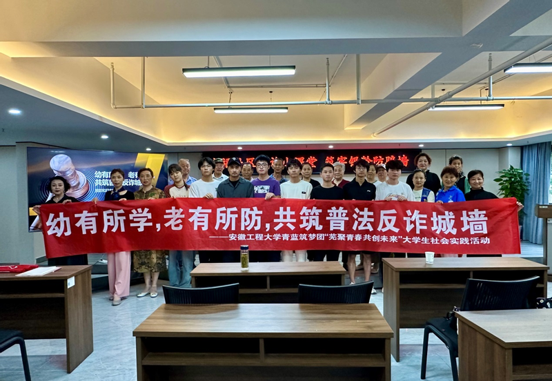 为提升市民反诈意识,推动平安社区建设,6月26日,化学与环境工程学院“青蓝筑梦团”暑期社会实践团队赴芜湖市镜湖区天门山街道广福社区,开展“普法反诈”公益活动。“青蓝筑梦团”由学院2023级化工、高分子专业7名学生组建而成,获批2024年芜湖市“芜聚青春 共创未来”大学生社会实践团队。社区居民、团队全体成员、项目指导教师马晨参与活动。