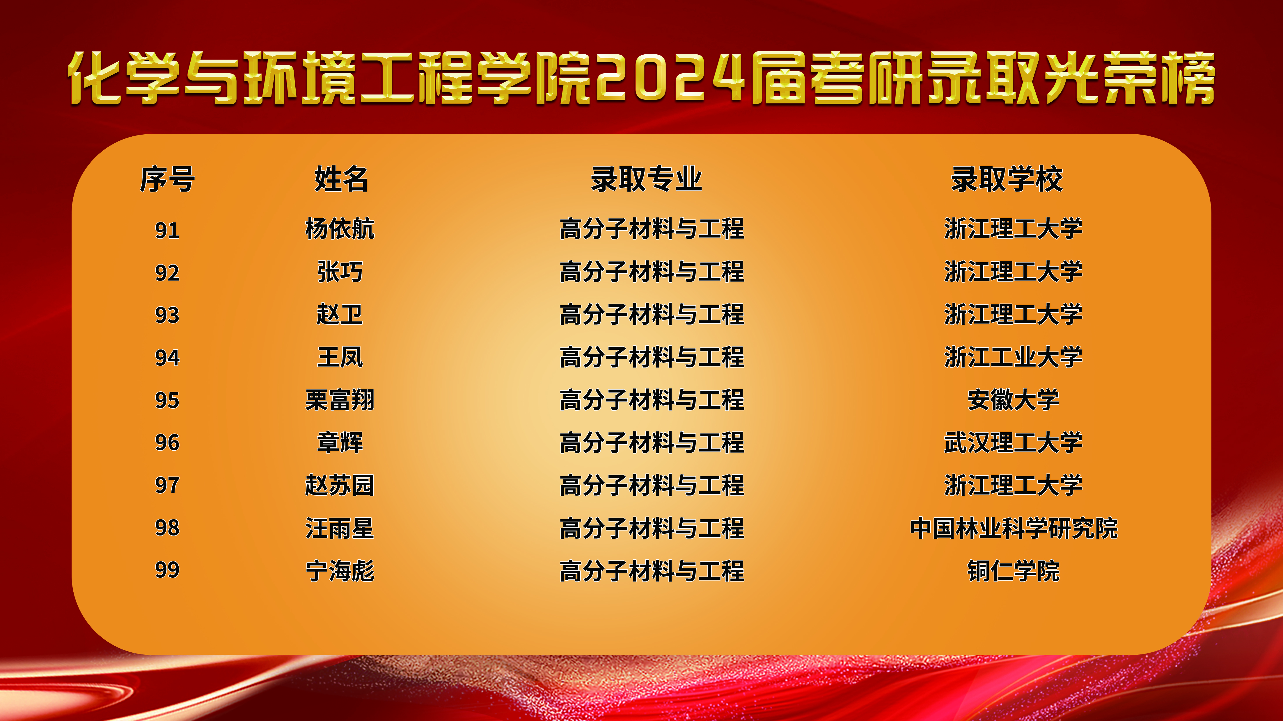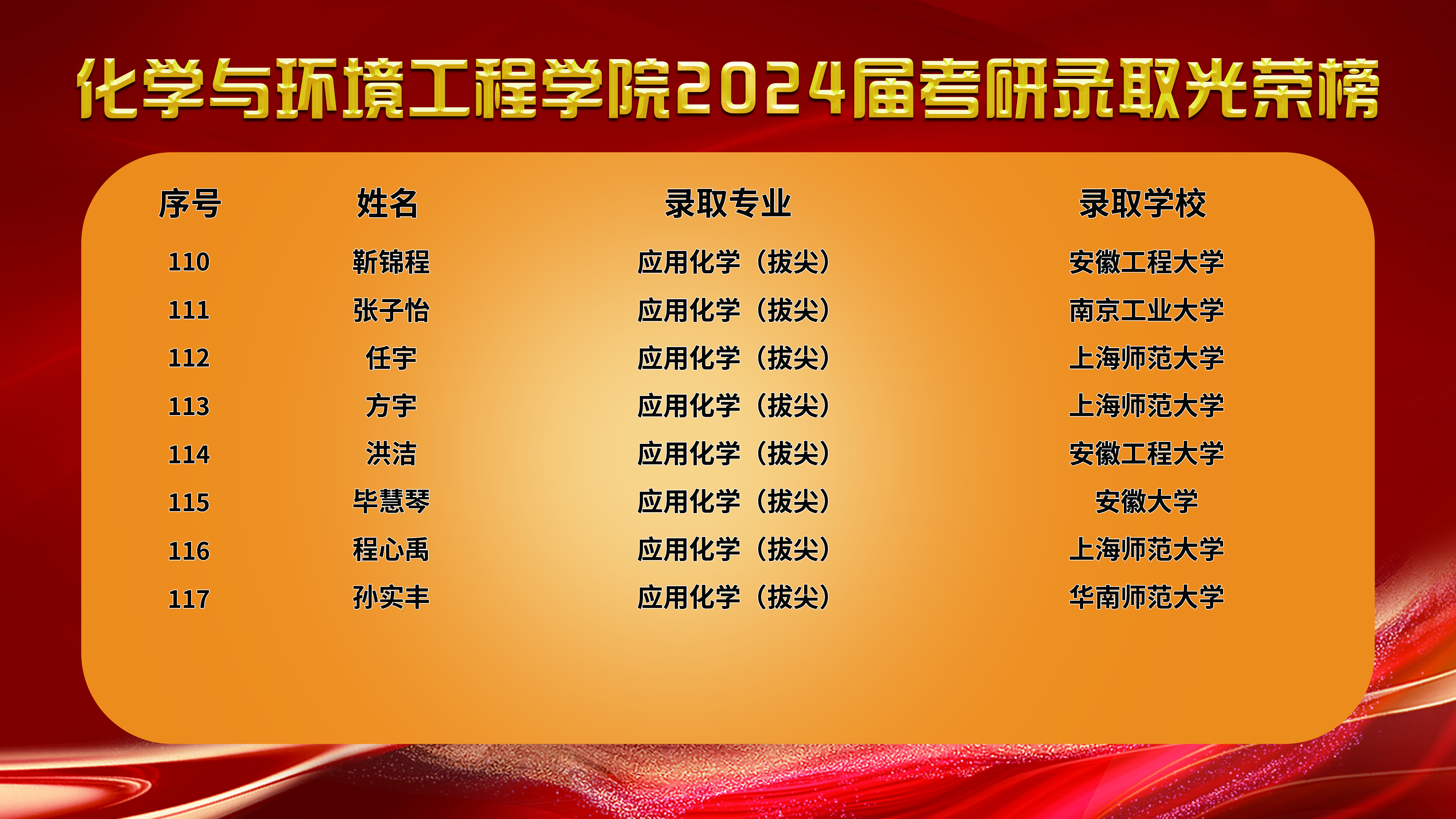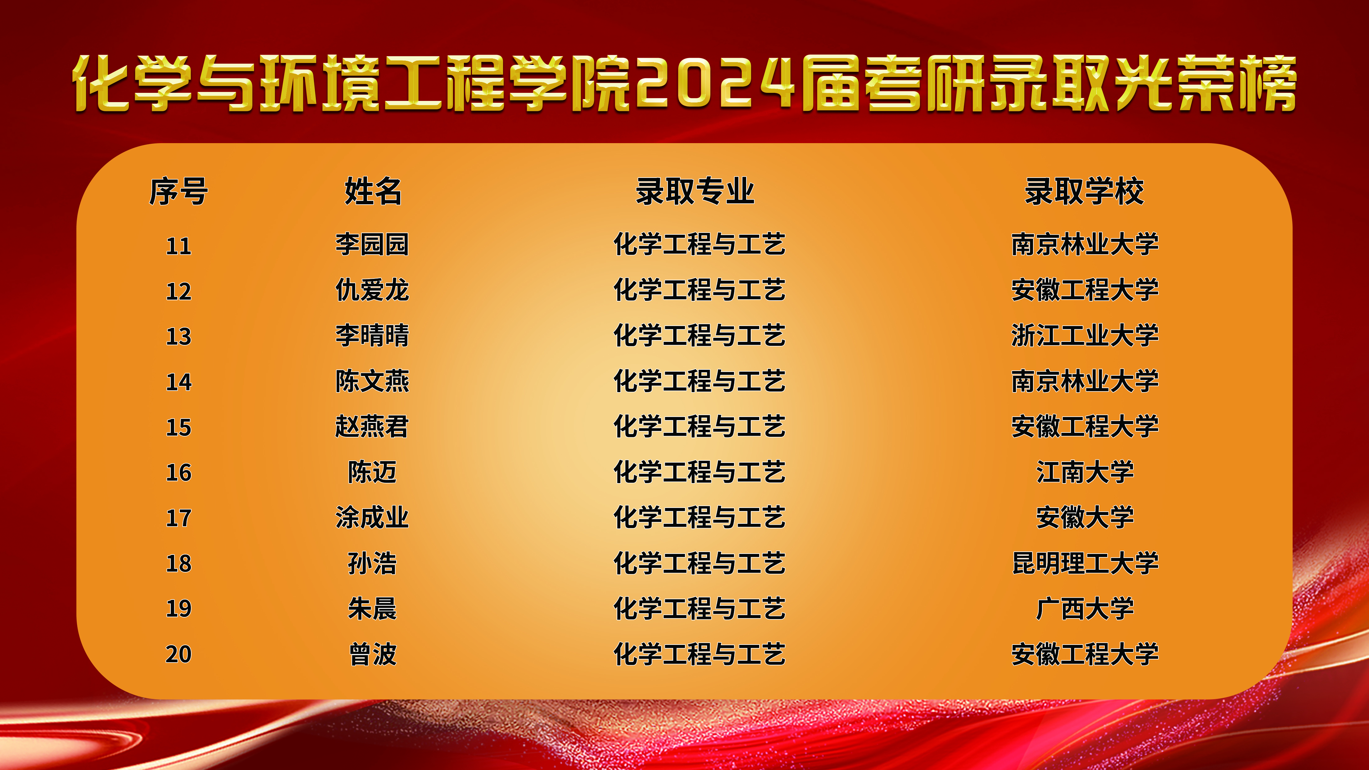 化学与环境工程学院在考研工作中所取得的成绩,是在学校党委行政的正确指导下,全院师生共同努力的结果。未来,我们将继续以考研为抓手,不断推进学风建设,提升教育教学质量,推动毕业生就业高质量发展。