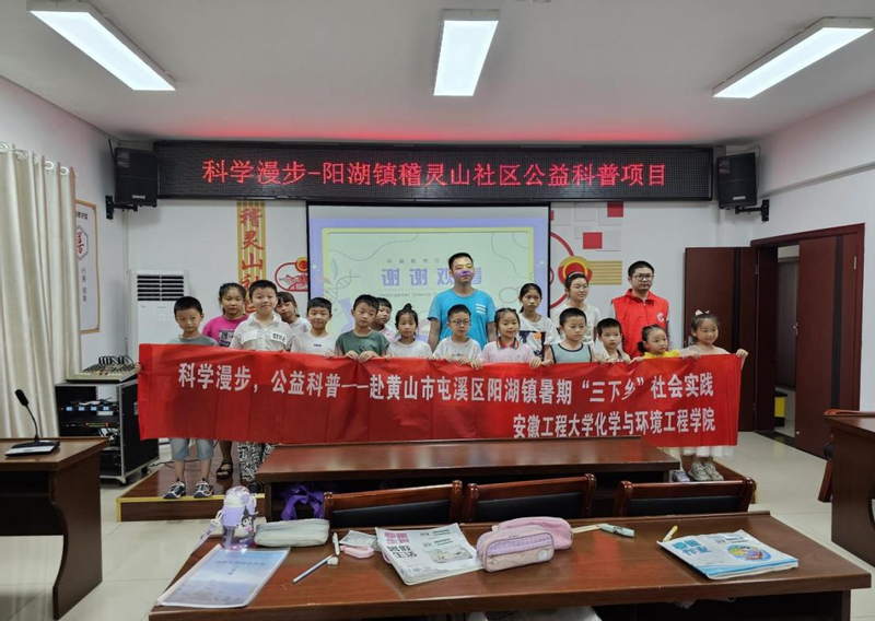 为推动“普惠乡村”事业发展,衔动乡村科教文化需求。8月中旬,化学与环境工程学院“启智未来队”赴黄山市阳湖镇稽灵山社区开展“科学漫步”暑期“三下乡”公益科普社会实践活动。实践团队由化学与环境工程学院应用化学(拔尖)专业学子组建。团队成员运用所学专业知识特长,通过趣味科普活动,破解日常科学迷思,启蒙在地童萌科创意识,以“实践”之笔,充分展现青年学子的责任与担当。8月12日,项目指导教师马晨对活动开展做调研指导。