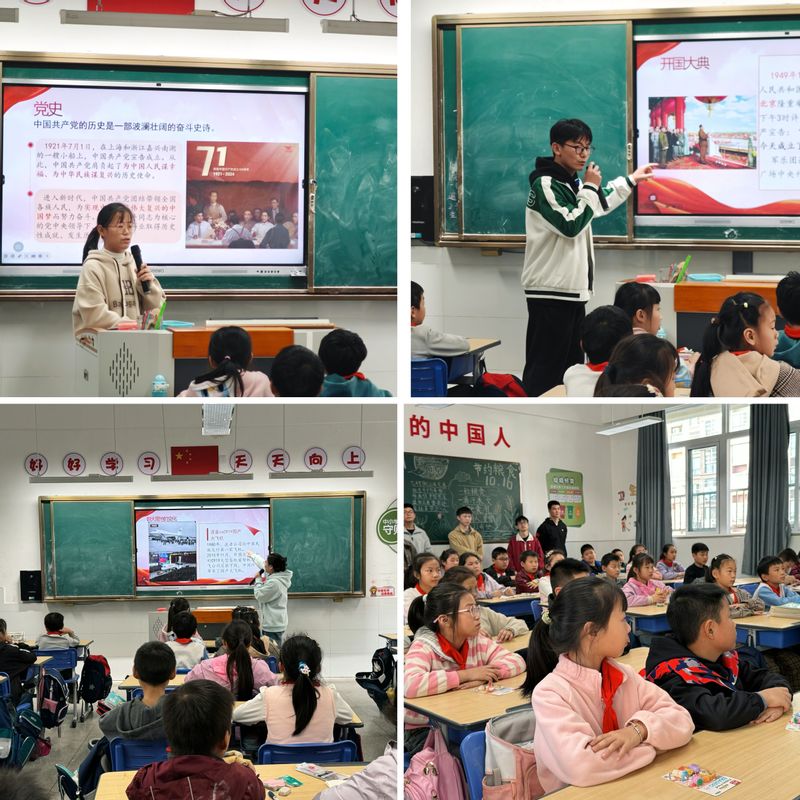 本次活动分为理论学习和实践体验两个环节。课堂上,应化211班团支部成员围绕“国庆节的历史回响”“了解共青团”“了解中国共产党”“厉害了我的国”四个部分依次向小朋友们介绍了国庆节的历史意义、国旗国徽、团旗团徽等知识。精心制作的课件、生动活泼的语言,在同学们心中埋下了爱国爱旗的种子。课堂上还设置了互动问答环节,小朋友们踊跃举手,纷纷发言,现场气氛轻松活跃。