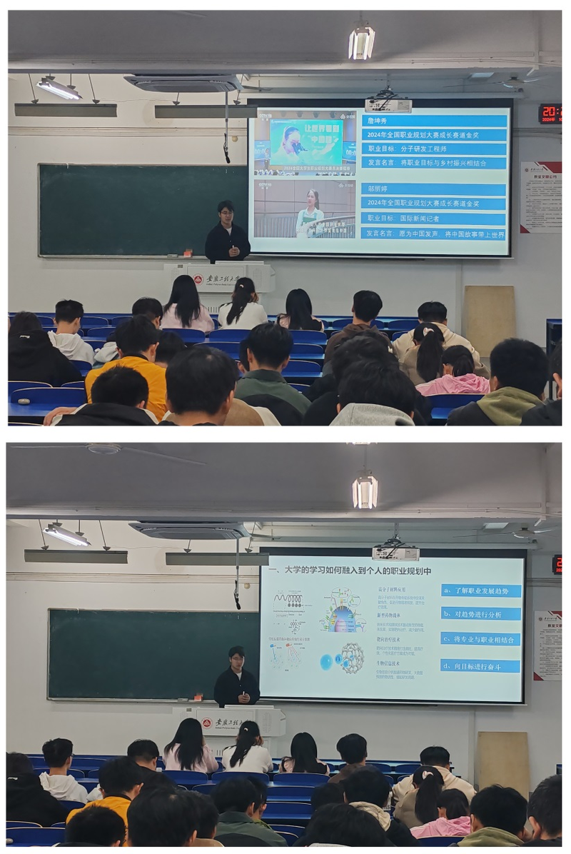 为进一步帮助青年学生明晰就业前景,尽早做好职业生涯规划,并充分发挥优秀校友的引领作用,提高学生的就业认知能力,为实现精准高质量就业奠定良好基础。10月24日,化学与环境工程学院举办“职引未来”校友大讲堂暨职业生涯规划大赛总结交流会。辅导员马晨就学院2024年度职业生涯规划总决赛赛况进行了经验分析。学院2016级应用化学专业校友、中国林业科学研究院林产化学工业研究所在读博士研究生刘勇与同学们分享了行业前沿动态及生涯规划建议,学院2023级全体本科生参加,活动由辅导员马晨主持。