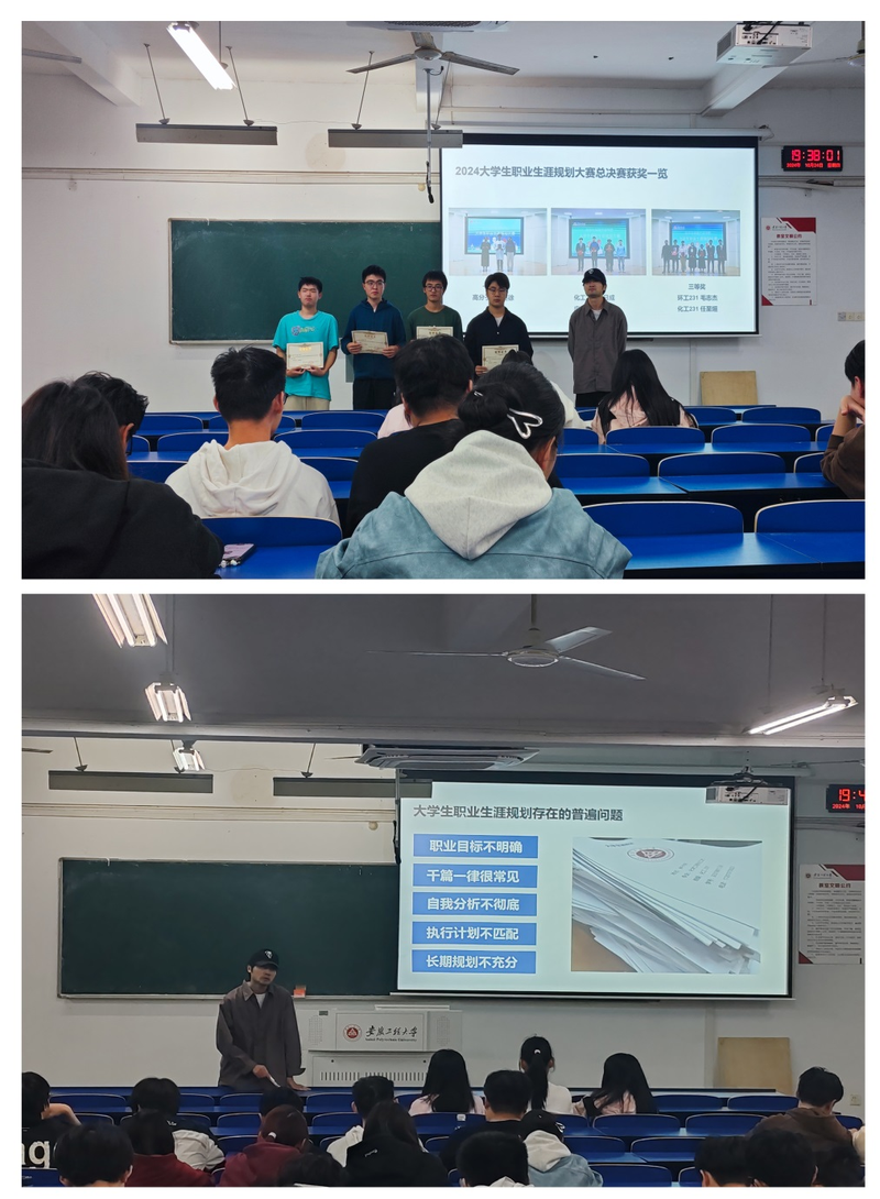 活动伊始,马晨为在总决赛中获奖的2023级全体同学进行了颁奖。随后,他结合规划书前期审核、选手备赛过程、临场表现等侧重分析了大学生职业生涯规划存在的常见问题。他表示,当前大学生普遍存在“职业目标不明确”、“自我认知不清晰”、“执行计划不匹配”、“长远计划不充分”等规划瓶颈,并结合2023级学情,分享了国内高校开设“职业生涯规划课”第一人、原中央民族大学经济学院副教授的规划哲学。