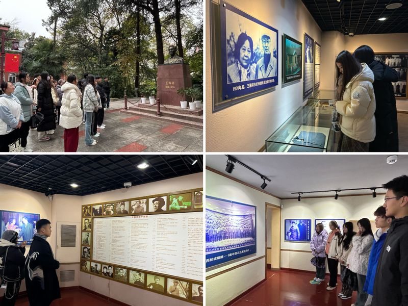 雨中的王稼祥纪念园,青松挺立、翠柏环抱,王稼祥铜像巍然耸立,庄严肃穆。走进纪念园,大家认真聆听讲解员讲述王稼祥同志革命事迹,不时驻足凝神,详细询问有关史实。园内一张张历史照片、一件件珍贵文物、一个个复原场景,让大家真切感受到了那段充满革命热情的峥嵘岁月。在参观学习过程中,同学们产生了强烈的情感共鸣,受到了一次深刻的党性教育和思想洗礼。