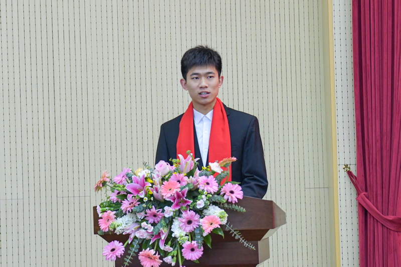 校友代表、安徽古井贡酒股份有限公司总工程师李安军表达了对母校的深切怀念和恩师的感激之情,回顾了校企合作情况,表示今后将继续努力,为母校发展贡献智慧和力量。在校学生代表、应用化学(拔尖)211班凌远志回顾了在校四年的成长经历,感激学校和老师们的悉心栽培。