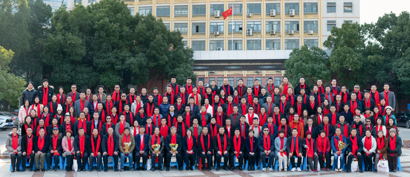 开幕式上,校友代表为退休老教师们献上花束,表达崇高敬意和诚挚感谢。与会人员进行合影留念。