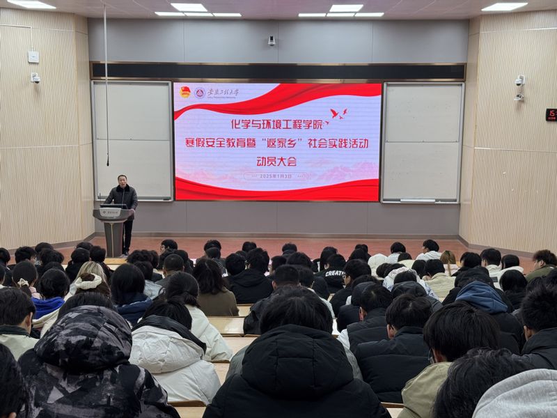 胡承功他强调了社会实践的重要意义,是学生从校园迈向社会的重要桥梁,是理论联系实际、提升综合素质的关键环节。他鼓励同学们,要把握机遇、积极参与、走出校门、深入基层,充分发挥化环学子的专业优势,在社会课堂中受教育、长才干、做贡献,奋力书写为中国式现代化挺膺担当的青春篇章。他详细讲解了寒假期间可能遇到的安全隐患及应对措施,包括交通安全、人身安全、财产安全、网络安全等方面。