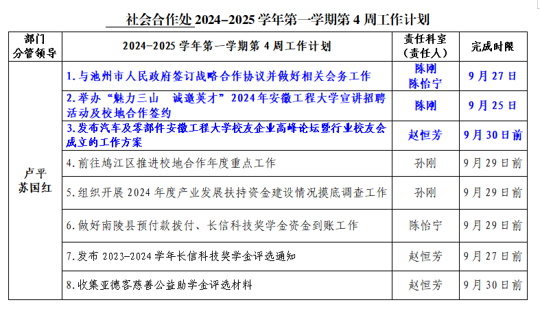 2024-2025学年第一学期第4周工作计划
