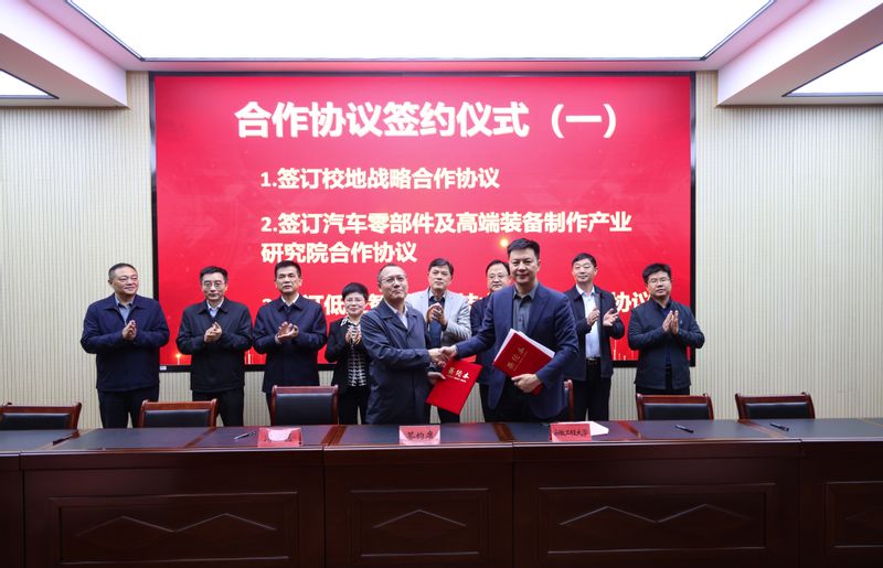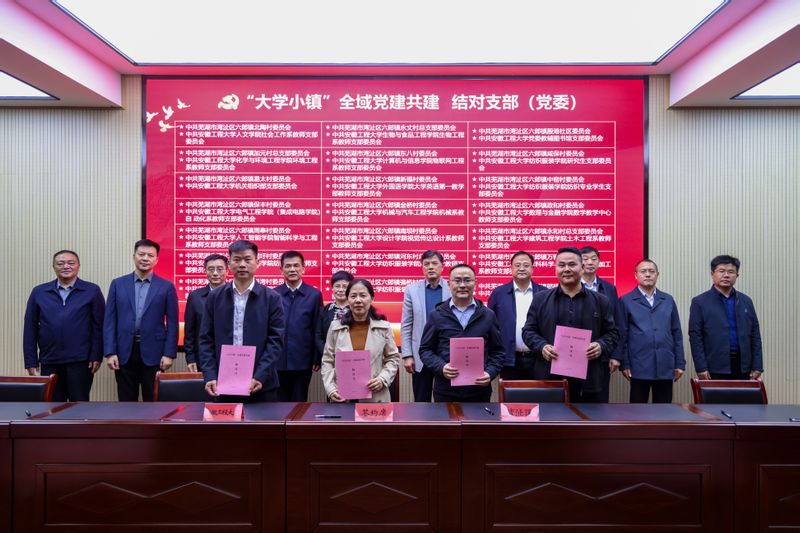 凤权与程金明分别代表校地签订了《RayBetApp官网下载 与湾沚区人民政府战略合作协议》、共建汽车零部件及高端装备制造产业研究院子协议、共建低空智联产业技术研究院子协议;纺织服装学院党委书记徐珍珍与湾沚区农业农村局局长王峰、湾沚区六郞镇镇长陈琦共同签订了“大学小镇”子协议;人文学院社会工作系教师党支部与北陶村党委、人工智能学院智能科学与工程系教师党支部与周皋村党委、纺织服装学院研究生党支部与咸保村党委、生物工程系教师党支部与永丈村党总支、图书馆党支部与殷港社区党委分别签订了“大学小镇”全域党建共建协议书。