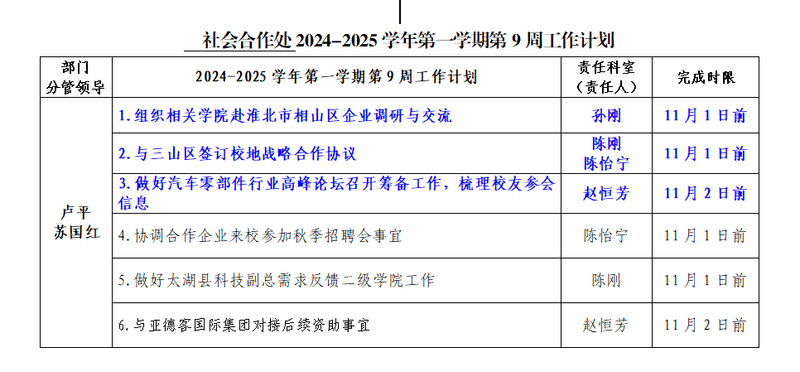 2024-2025学年第一学期第9周工作计划