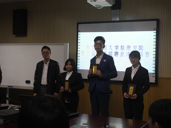 3月31日晚,数理学院第三届模拟招聘会决赛于三教学术交流室举行,决赛评委由白大海、张培雨、满志宏老师担任。