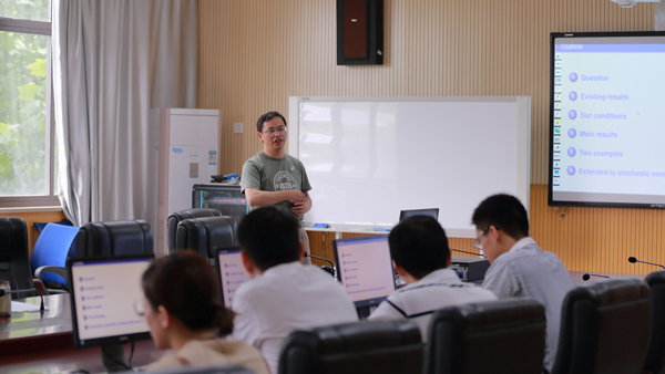 报告会期间,费为银教授还就随机微分系统的高阶非线性等问题与朱全新教授进行了深入地交流与探讨。报告会气氛活跃,营造出浓厚的学术氛围,令在场师生深受启发。
