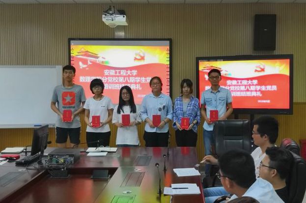 6月8日下午,数理学院第八期学生党员培训班结业仪式在学院学术交流室举行。数理学院分党校校长、院党委书记周毅仁,团委书记郭亚勤、金融学生党支部书记李悦、辅导员蒋书云及第八期培训班全体学员参加了仪式。仪式由培训班班主任满志宏主持。