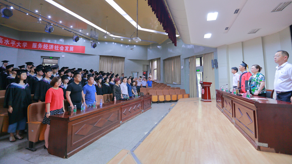 毕业典礼暨学位授予仪式在雄浑激昂的《国歌》声中拉开序幕。
