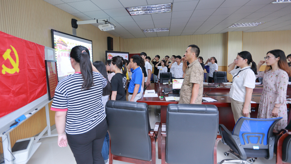 在统计学生党支部书记满志宏的带领下,新发展师生党员与其他老党员一起,面向党旗庄严宣誓和重温入党誓词:“我志愿加入中国共产党,拥护党的纲领,……随时准备为党和人民牺牲一切,永不叛党!”他们语气铿锵,神情坚定,在这样一个特别的日子里,向党和人民表达赤胆忠诚。