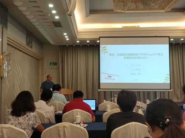 费为银应邀做了题为“逆选择与道德风险下带有Knight不确定的最优动态契约设计”的学术报告,报告从概率统计模型本身的不确定性是本质的、不能消除掉的角度出发,在连续时间和道德风险背景下研究了一个带有Knight不确定的委托-代理问题,这个问题框架中主要考虑了逆选择对契约和道德优秀代理人总效用的影响。