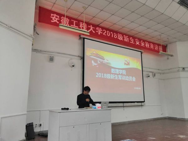 10月8日上午,数理学院2018级新生军训动员大会于2教报告厅举行。数理学院党委副书记水心宝、团委书记(学工秘书)郭亚勤、辅导员满志宏,以及全体2018级新生参加了动员会。会议由郭亚勤主持。