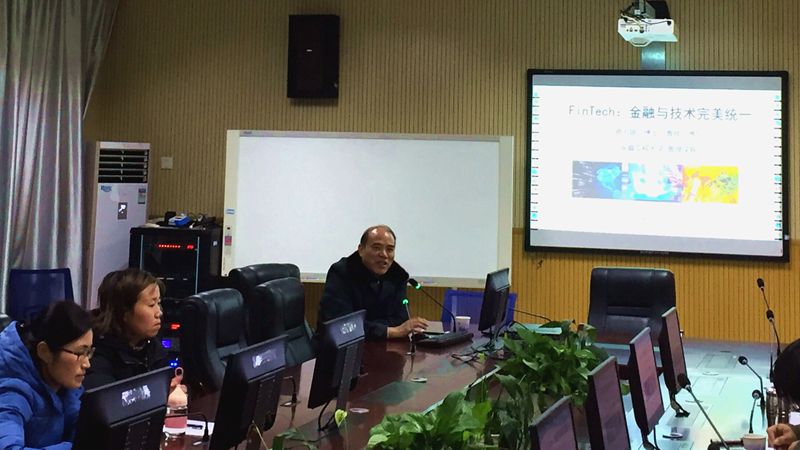 1月2日晚,数理学院院长费为银教授在数理学院学术交流室为学院师生作了《浅谈金融科技》学术报告,数理学院部分青年教师、全体研究生聆听了报告会。